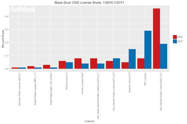 | Gráfico de adoção de licenças entre 2010 e 2017. |